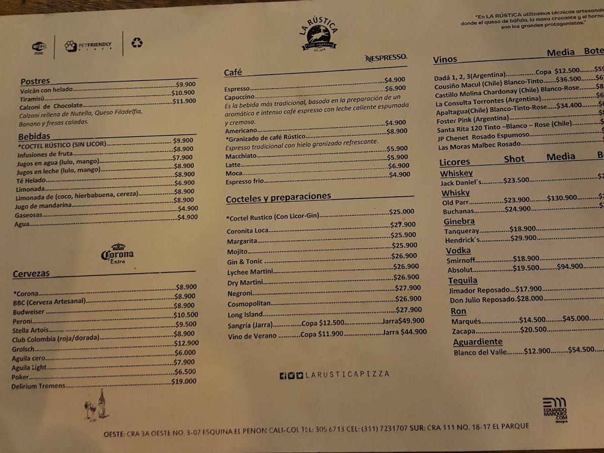 At LA RUSTICA, the star of the menu is undoubtedly the pizza rústica, acclaimed for its robust flavors and homemade touch. Customer reviews, like that of Diego Armando Echavarria, rave about not just the food, but also the warm, welcoming service that enhances the dining experience.
